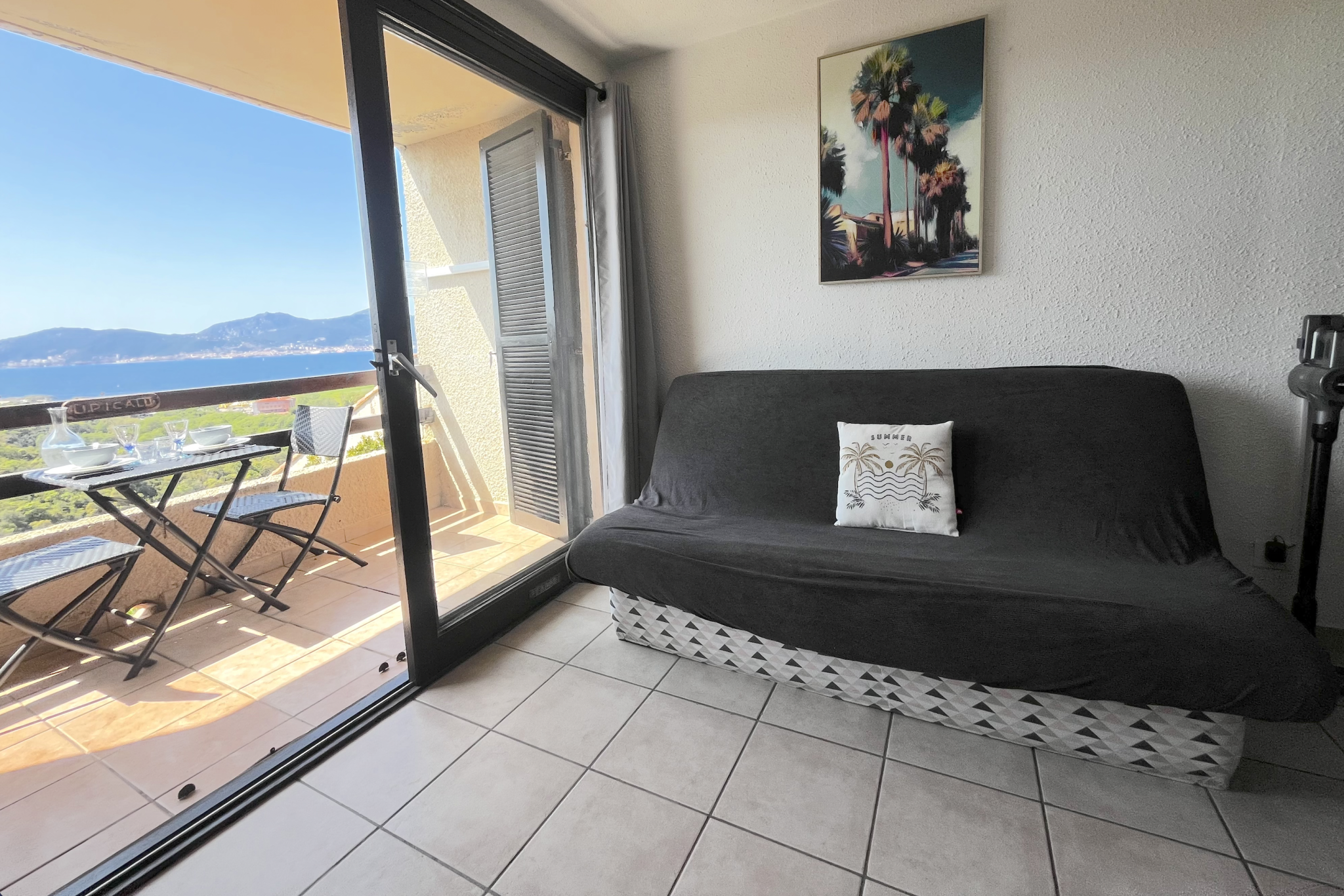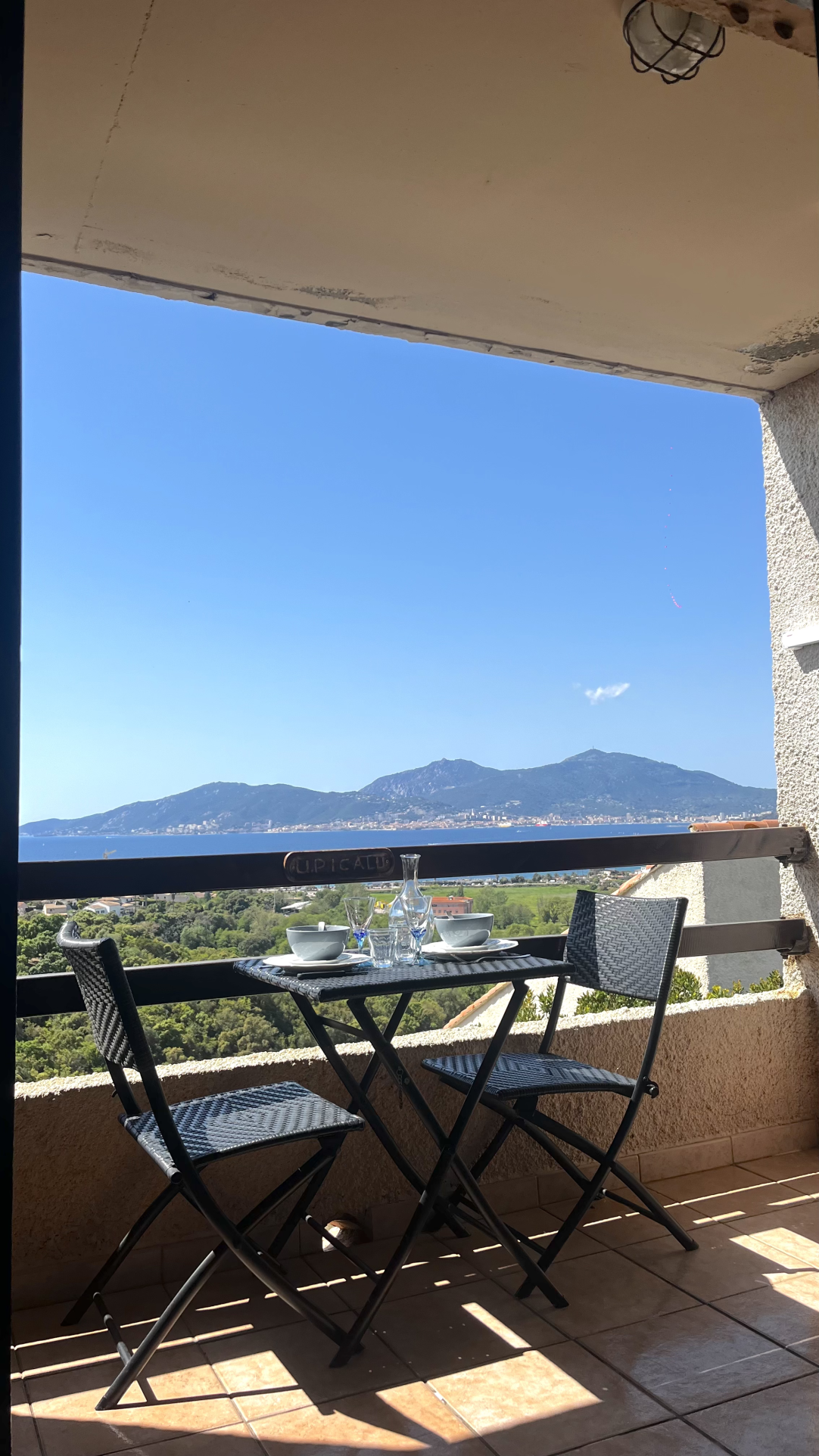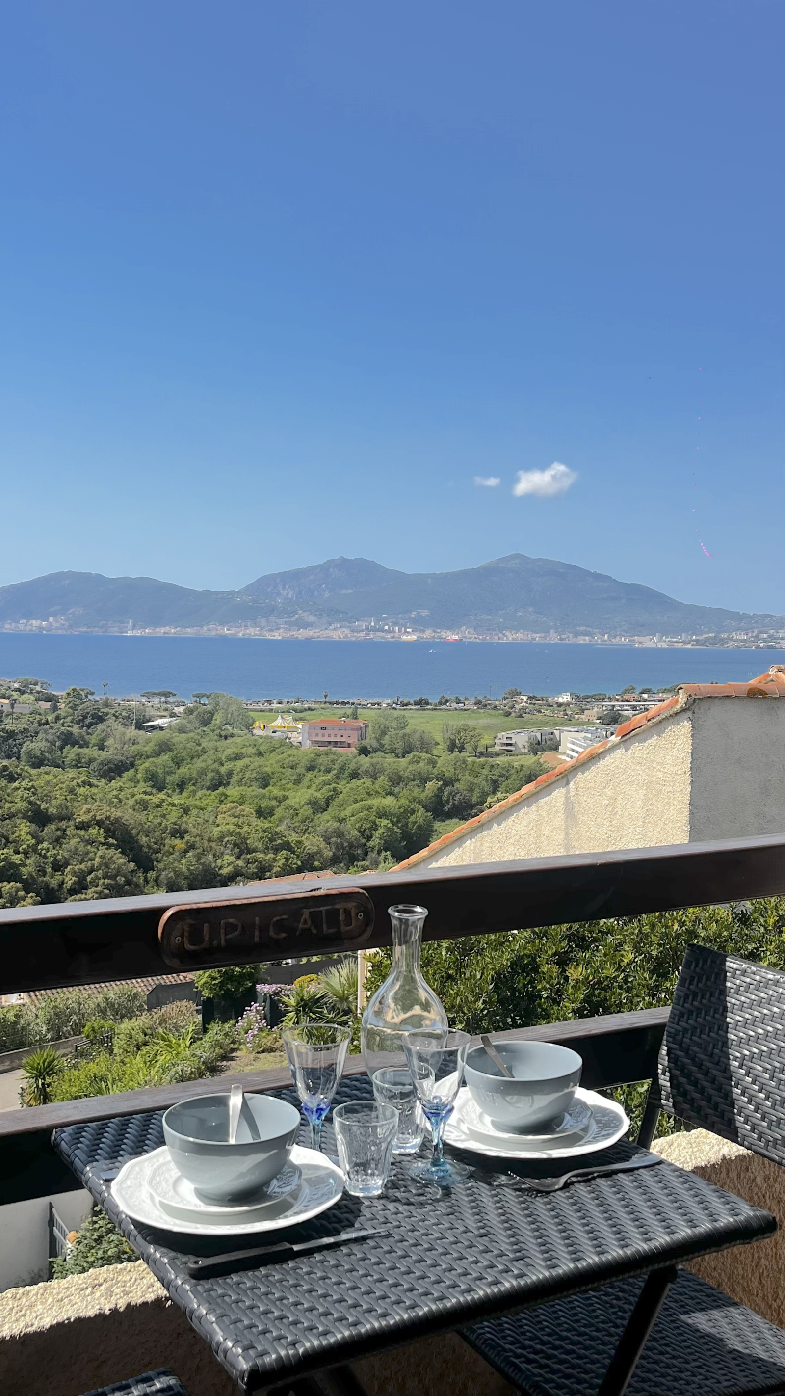 - une terrasse pour profiter de la merveilleuse vue sur le golfe et la ville d'Ajaccio ainsi que le coucher de soleil sur les îles sanguinaires.