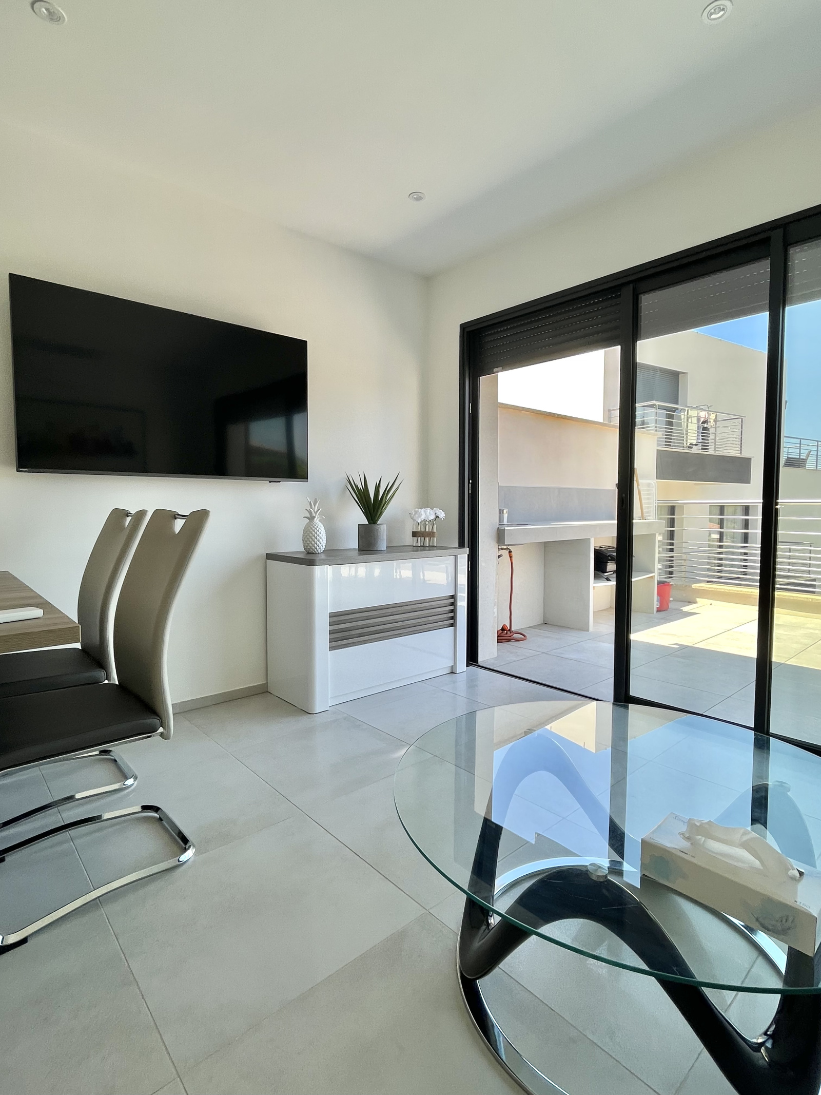 - d'une terrasse bachée pour profiter de vos repas en famille en observant la mer.