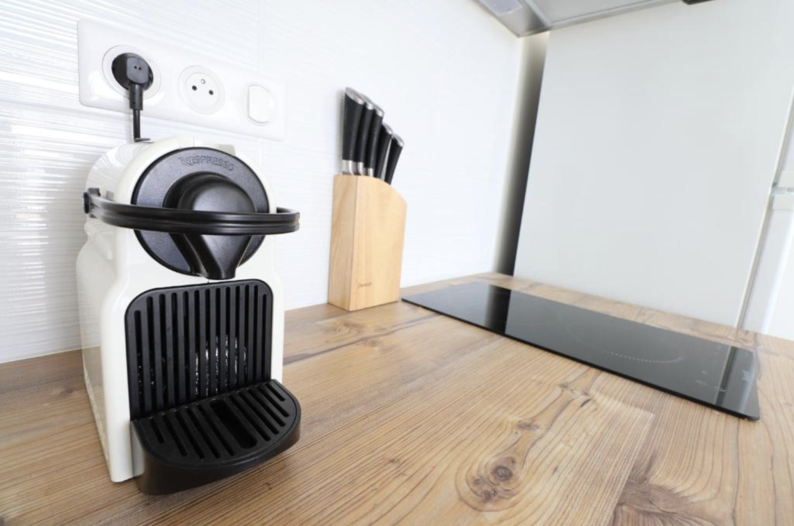 - d'un coin cuisine entièrement équipée pour profiter des vacances (lave vaiselle, réfrigérateur, congélateur, lave linge, four, cafetière,...)